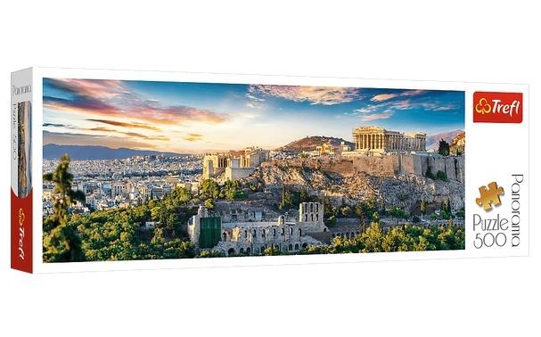 Puzzle panoramiczne składające się z 500 elementów przedstawiające Akropol w Atenach. Po ułożeniu powstanie obrazek o wymiarach 660 x 237mm. Produkt został wykonany z wysokiej jakości materiałów, z zastosowaniem specjalnego kalandrowanego papieru odbijającego światło, co ułatwia układanie.