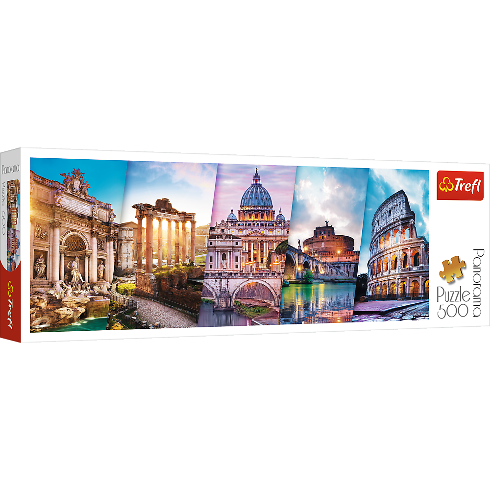 Puzzle panoramiczne składające się z 500 elementów przedstawiające kolaż ze zdjęciami architektonicznych symboli Włoch. Po ułożeniu powstanie obrazek o wymiarach 660x237mm. Produkt został wykonany z wysokiej jakości materiałów, z zastosowaniem specjalnego kalandrowanego papieru odbijającego światło, co ułatwia układanie. Produkt został wyprodukowany w Polsce, a do produkcji zostały użyte materiały ekologiczne.