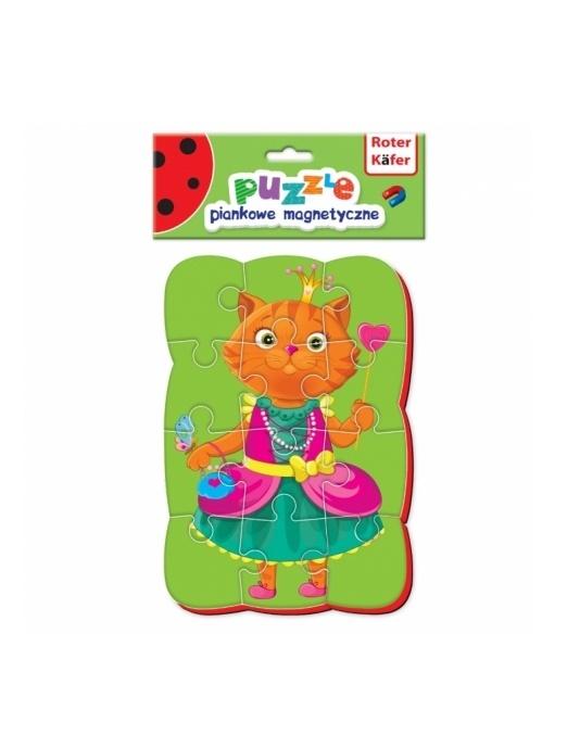 Śliczny obrazek magnetyczny przedstawiający księżniczkę kotkę pomoże maluchowi nauczyć się koncentrować uwagę, ćwiczy drobną motorykę, uczy cierpliwości. To właśnie puzzle są pierwszą zabawką dzieci, dlatego powinny być wygodne w układaniu i miłe w dotyku. Puzzle magnetyczne Roter Käfer są zrobione ze spienionego materiału, co powoduje, iż są one lekkie i miękkie. Puzzle składają się z 12 części. Dla ułatwienia na spodzie opakowania znajduje się obrazek przedstawiający puzzle po ułożeniu.