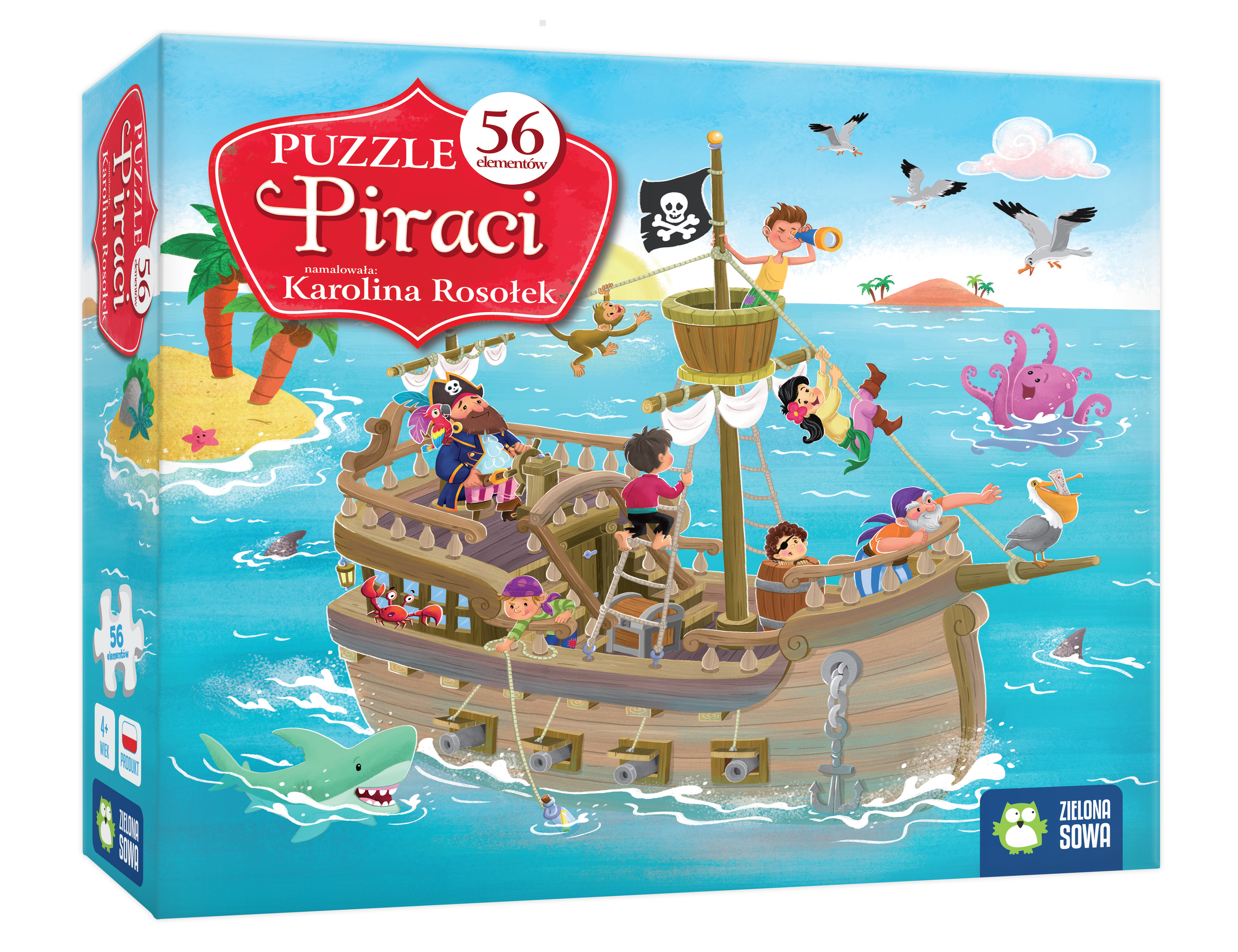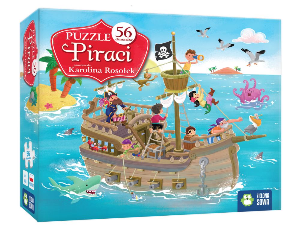 Ty także możesz zostać piratem! Puzzle 56 elementów dla wszystkich miłośników morskich przygód. Układanie obrazka to świetna zabawa, która dodatkowo przynosi mnóstwo korzyści - puzzle rozwijają wyobraźnię, poprawiają zdolności manualne i ćwiczą spostrzegawczość. Sztywne elementy to gwarancja jakości, która pozwoli długo cieszyć się układanką. Puzzle to doskonały prezent na każdą okazję. Po ułożeniu powstaje obrazek o wymiarach: 47 x 54,4 cm. Wiek 4+