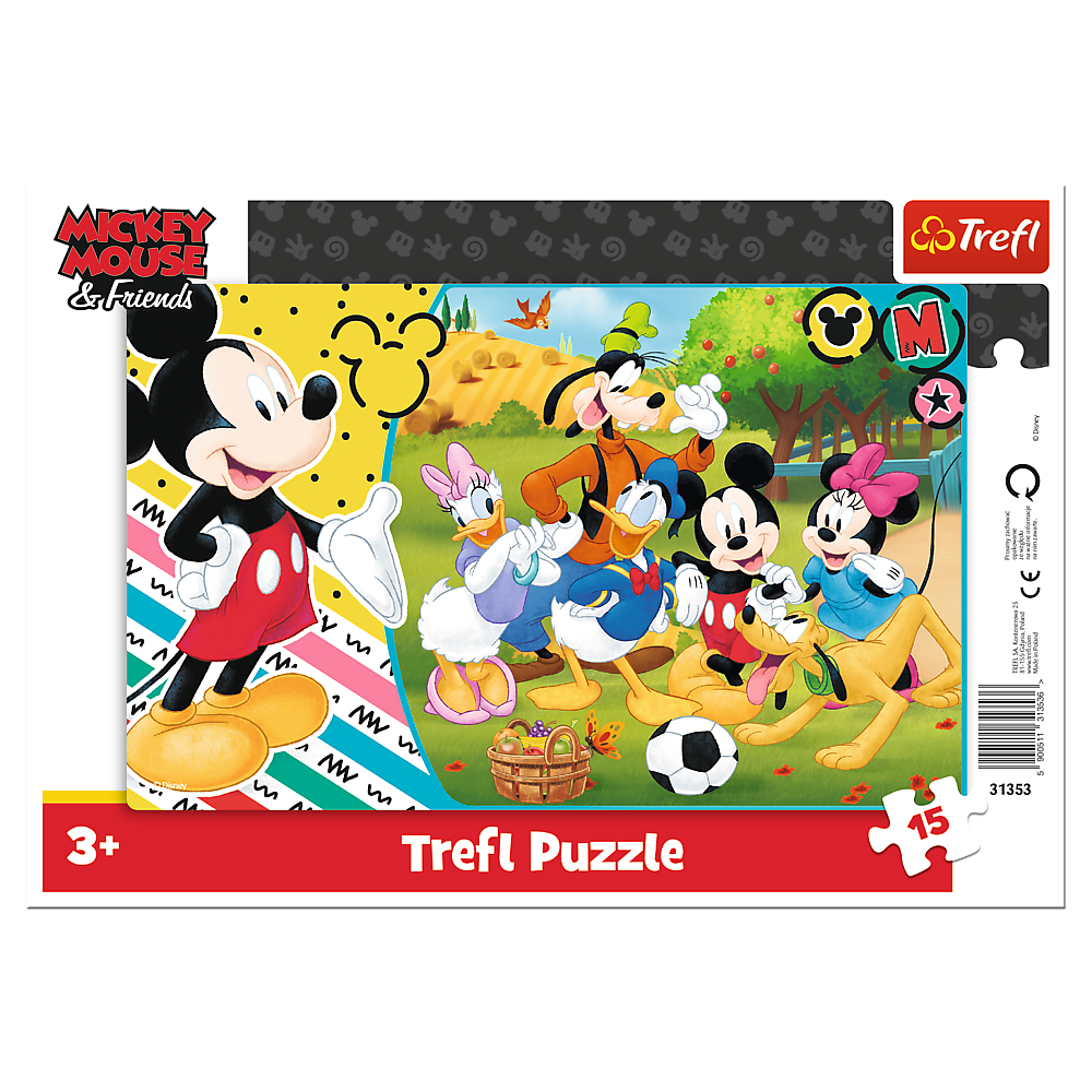 Puzzle ramkowe 15 elementów z bohaterami uwielbianej przez dzieci bajki Myszka Mickey.