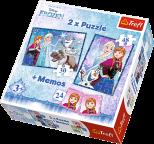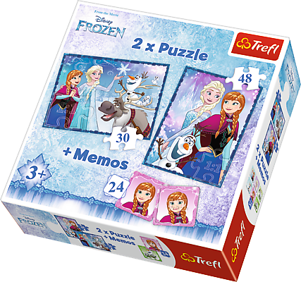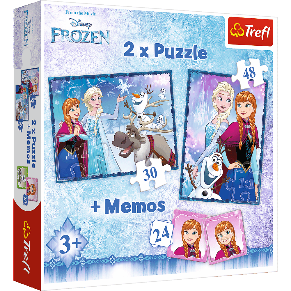 Siostry - Puzzle 2w1 + memo Podwójna radość układania! Puzzle 2w1 "Siostry" to dwie układanki różnej wielkości z obrazkami przedstawiającymi bohaterów filmu animowanego Disneya. Zestaw doskonale spełnia oczekiwania rodzeństwa - każdy ułoży swój ulubiony obrazek nawet w tym samym czasie. Zróżnicowana liczba elementów pozwala na zabawę zarówno młodszym, jak i nieco starszym dzieciom. Dodatkowym urozmaiceniem zabawy są karty memo z postaciami bajki. Puzzle przyjazne dziecku! Do produkcji puzzli użyliśmy ekologicznych farb spożywczych i płótnowanego papieru eliminującego odbijanie światła, co gwarantuje bezpieczeństwo i radość zabawy. Zawartość pudełka: 1 układanka 48 elementów 1 układanka 30 elementów 24 karty memo