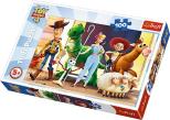Puzzle 100 elementów z postaciami filmu animowanego Toy Story. To niezwykła gratka dla najmłodszych fanów bajki. Teraz możecie sami ułożyć obraz ze swoimi ulubionymi bohaterami. Po ułożeniu powstanie obrazek o wymiarach 41x27,8 cm. Wysoką jakość, nasycenie kolorów i bezpieczeństwo układania zapewnia kalandrowany papier odbijający światło, pokryty ekologicznymi farbami spożywczymi.