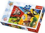 Puzzle 60 elementów przedstawiające bohaterów filmu Toy Story. Po ułożeniu powstanie obrazek o wymiarach 33x22 cm. Wysoką jakość, nasycenie kolorów i bezpieczeństwo układania zapewnia kalandrowany papier odbijający światło i wykorzystanie materiałów ekologicznych.