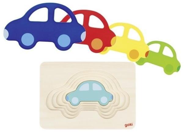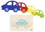 Zadaniem dziecka jest ułożenie 5 samochodzików w odpowiedniej kolejności - od najmniejszego do największego.
