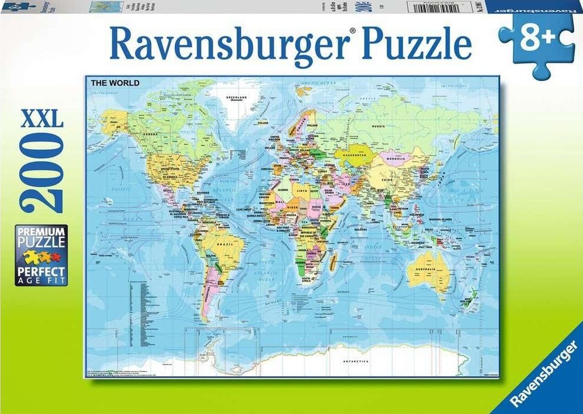 Puzzle XXL 200 elementów Ravensburger to składająca się ze 200 elementów układanka przedstawiająca mapę świata