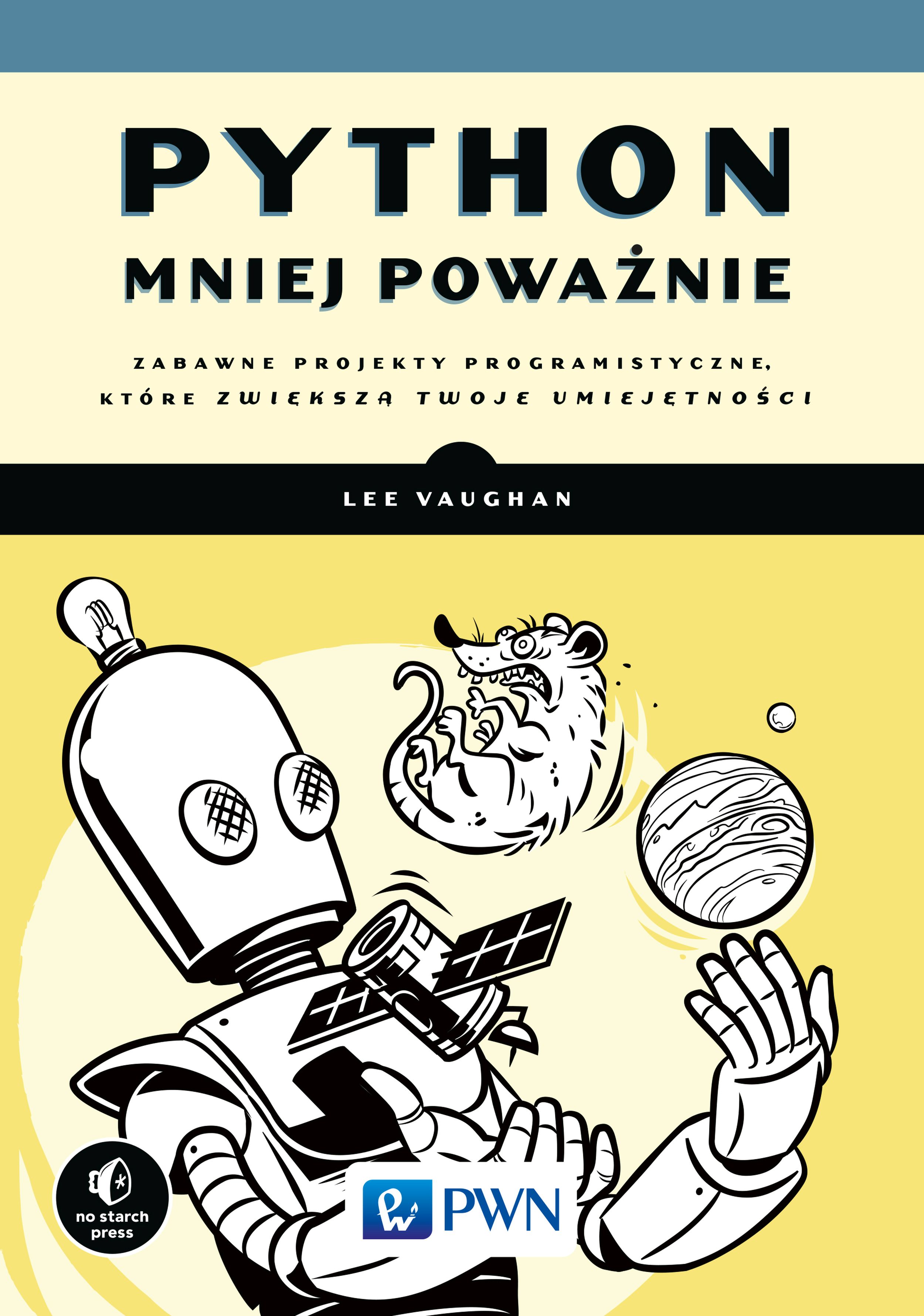 I wiele więcej! Niezależnie od tego, czy chcesz zdobyć nowe umiejętności w języku Python, czy po prostu potrzebujesz kreatywnych ćwiczeń programistycznych, w książce znajdziesz niekończącą się edukacyjną i naukową zabawę.