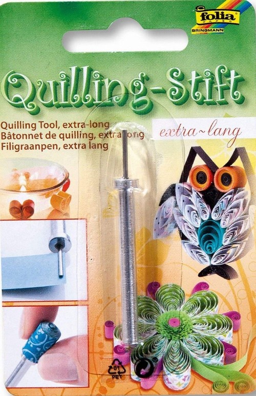 Quilling jest techniką do tworzenia ozdób z wąskich pasków papieru, zawiniętych w kształt sprężyny i odpowiednio uformowanych. Przygotowane elementy naklejane są na zdobioną powierzchnię tak, że pasek papieru jest w stosunku do niej prostopadły. Igła FO 1283– ekstra długa końcówka, idealna do nawijania szerokich pasków