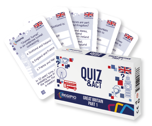 QUIZ & ACT Great Britain to 50 kart dydaktycznych z pytaniami dotyczącymi kultury i historii Wielkiej Brytanii.