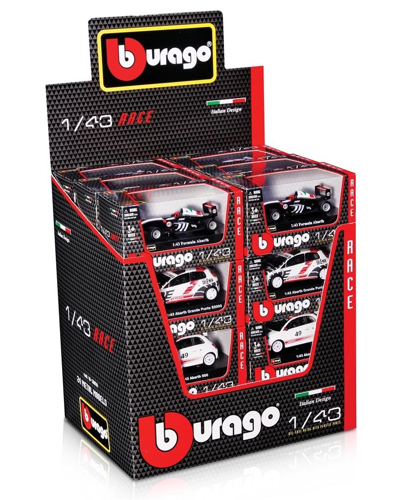 Oryginalne modele samochodów Bburago z serii Race w skali 1:43. Modele wykonane są z metalu z plastikowymi dodatkami. Produkty wysyłany losowo.
