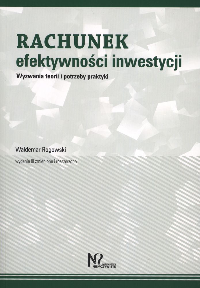 Książka umożliwia zrozumienie zasad prowadzenia rachunku efektywności inwestycji, poznanie zakresu i metodyki oceny efektywności inwestycji, założeń, algorytmów, interpretacji oraz kryteriów decyzyjnych metod oceny opłacalności, a także metod analizy ryzyka inwestycji. Wskazuje zalety i wady metod oceny opłacalności oraz metod analizy ryzyka inwestycji. Trzecie wydanie zostało wzbogacone o charakterystykę, wyceny elastyczności zarówno decyzyjnej, jak i wynikającej z cech ocenianej inwestycji (elastyczności inwestycji), kompleksową prezentację metody skorygowanej NPV – ANPV, opis metodyki ekonomicznego (społecznego) rachunku efektywności inwestycji, zagadnienia związane z podejmowaniem decyzji finansowej dotyczącej inwestycji, a także o prezentację wielokryterialnego podejścia do oceny atrakcyjności inwestycji. W publikacji szczegółowo omówiono: – koncepcję prowadzenia współczesnego rachunku efektywności inwestycji, – identyfikację, pomiar i wycenę korzyści oraz kosztów inwestycji, – konstrukcję algorytmów i formuł przepływów pieniężnych netto, – formułowanie zasad prowadzenia rachunku efektywności inwestycji, – wykorzystywanie określonych metod oceny opłacalności i analizy ryzyka inwestycji, – zakres stosowalności poszczególnych metod rachunku efektywności inwestycji w polskiej i światowej praktyce gospodarczej, – adaptację metodyki do nowych uwarunkowań i wymagań. Książka jest przeznaczona dla potencjalnych inwestorów, menedżerów dokonujących oceny efektywności inwestycji (projektów), analityków finansowych i decydentów z różnych branż, a także wykładowców i studentów kierunków ekonomicznych.