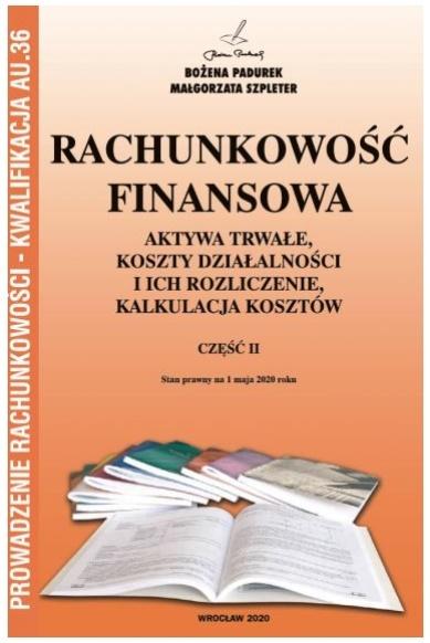 RACHUNKOWOŚĆ FINANSOWA. CZĘSC II. AKTYWA TRWAŁE, KOSZTY DZIAŁALNOŚCI I ICH ROZLICZENIE, KALKULACJA KOSZTÓW KWALIFIKACJA A.36W publikacji ,,Rachunkowość finansowa. Część II"" omówiono pojęcie i klasyfikację aktywów trwałych oraz sposób ich wyceny. Przedstawiono także metody obliczania amortyzacji, ewidencję zmian w stanie i wartości aktywów trwałych na kontach księgi głównej i na kontach ksiągpomocniczych. Scharakteryzowano koszty i układy ich gromadzenia. Przedstawiono ewidencję i rozliczenie kosztów według różnych wariantów na kontach zespołów 4. i 5. oraz omówiono koszty rozliczane w czasie. Ta część opracowania zawiera omówienie i istotę kalkulacji kosztów, jej rodzajów, metody przeprowadzania oraz przykłady jej sporządzania.W opracowaniu znajdują się przykłady zadań rozwiązanych oraz ćwiczenia do samodzielnego wykonania przez uczniów, które pozwalają w czasie realizacji tematu na utrwalenie praktycznych umiejętności.Podsumowaniem ewidencji księgowej przedstawionej w części II ,,Rachunkowość finansowa są trzy testy samodzielnej kontroli. Ponadto zamieszczono w podręczniku wykaz kont księgi głównej utworzony na potrzeby szkolne, który jest wykorzystywany do dekretacji dowodów księgowych.Kolejność rozdziałów w logicznym porządku ujmuje część materiału do nauczania w zawodach technik ekonomista i technik rachunkowości dla kształcenia w zakresie kwalifikacji A.36 (Prowadzenie rachunkowości).Publikacja opracowana zgodnie z nową podstawą programową dla zawodu technik ekonomista dla kształcenia w zakresie kwalifikacji A.36 (Prowadzenie rachunkowości). Stanowi materiał pomocniczy, wspomagający edukację, niepodlegający procedurze dopuszczenia do użytku szkolnego przez Ministra Edukacji Narodowej.