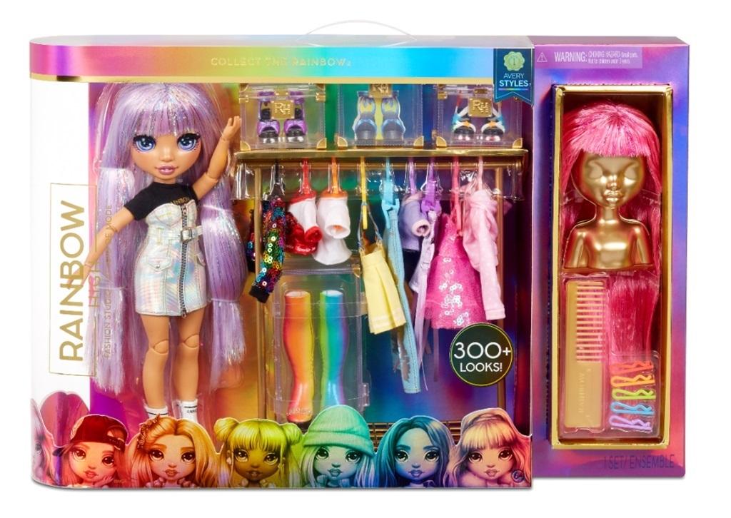 Wejdź do Rainbow High Fashion Studio. Stwórz ponad 300 stylizacji z tęczą, które możesz łączyć i dowolnie dopasowywać. Studio Rainbow High Fashion jest wyposażone w ekskluzywną lalkę Avery Styles - wspaniałą projektantką mody, na którą wszyscy patrzą w szkole.