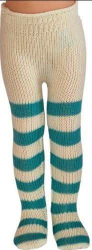Rajstopy dla lalek 32cm kremowe w zielone paski