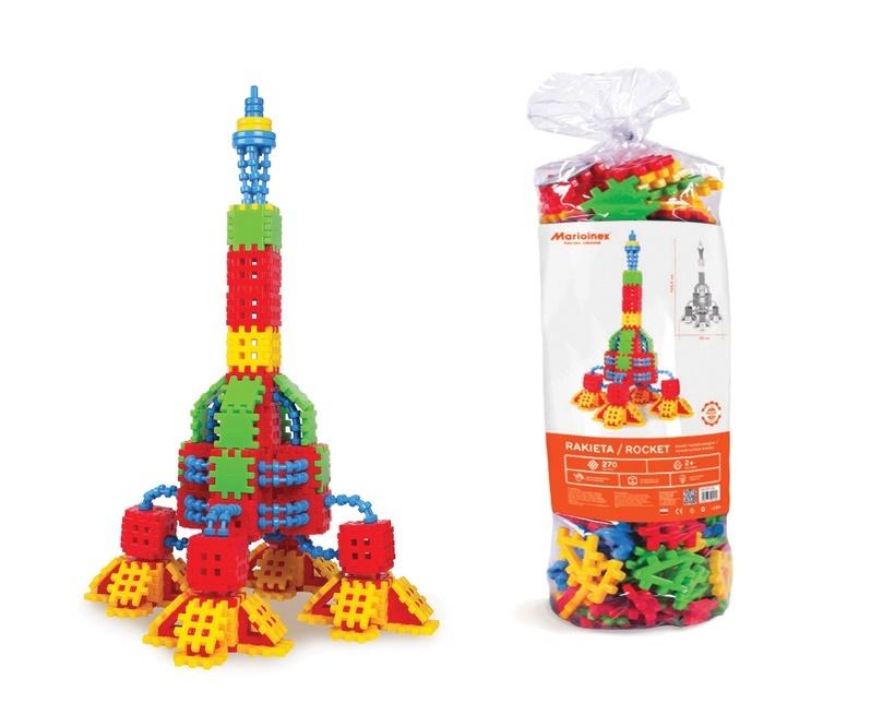 Zestaw klocków konstrukcyjnych składa się ze 270 elementów, z których można zbudować rakietę.