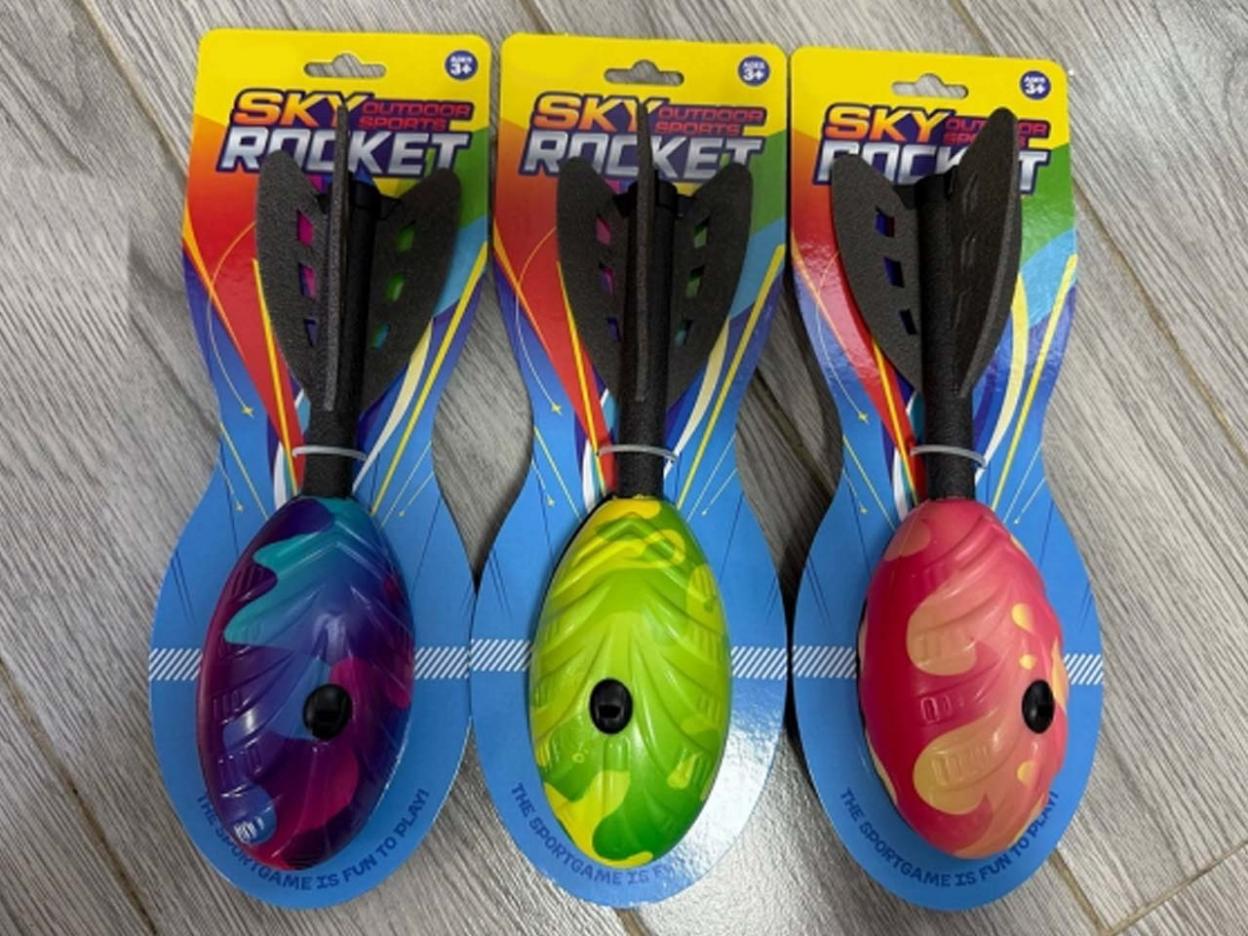 Kolorowa rakieta Sky Rocket to świetna propozycja dla dzieci i dorosłych, którzy lubią aktywną zabawę na dworze. Dzięki lekkiej konstrukcji i aerodynamicznemu kształtowi rakieta unosi się wysoko w powietrze, zapewniając mnóstwo radości podczas zabawy w ogrodzie, na plaży czy w parku. Miękkie, piankowe skrzydła zwiększają bezpieczeństwo użytkowania. Wymiary: ok. 33 cm x 11,5 cm x 6 cm. Wiek: 3+. Idealna do zabawy na świeżym powietrzu i rozwijania koordynacji ruchowej.