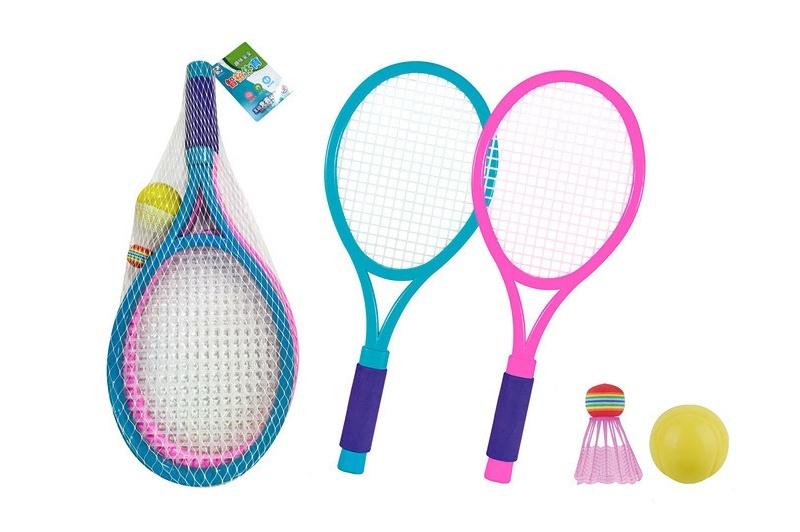 W zestawie: 2 rakietki 22 x 52 cm, lotka 8 cm, piłeczka o średnicy 6,3 cm, pakowane w siatkę, 3+