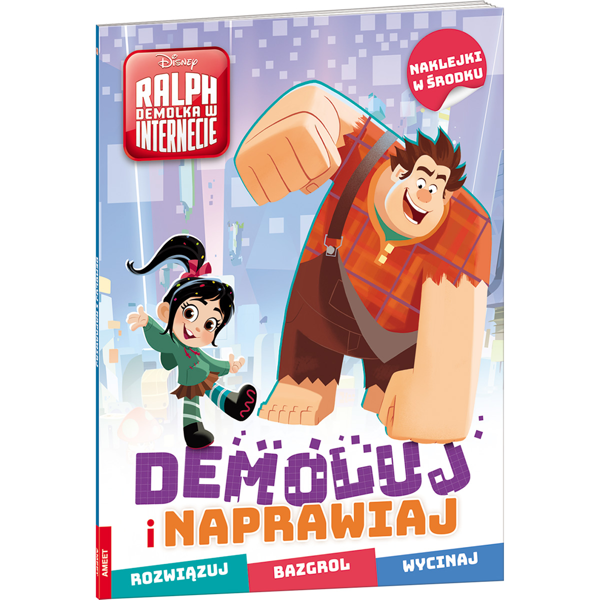 Hej, co powiesz na demolkę internetu i inne przygody na łączach? To wyzwanie godne prawdziwego kumpla Ralpha Demolki. Gotowy? Sprawdź, czy potrafisz poprawić zasięg, rozszyfrować hasło, a może nawet… popsuć cały internet? Jeśli chcesz się rozruszać, poćwicz z książką i przypakuj jak Ralph! W książce czekają też na Ciebie inne odjazdowe zadania, a także wycinanki oraz naklejki. Demoluj i naprawiaj – dobrej zabawy!