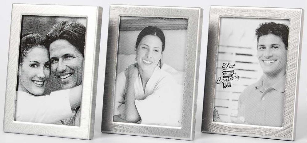 3 metalowe ramki, foto 4 x 6 cm, rozmiar ramki 4,8 x 6,5 cm, do postawienia, szerokość listwy 0,5 cm.