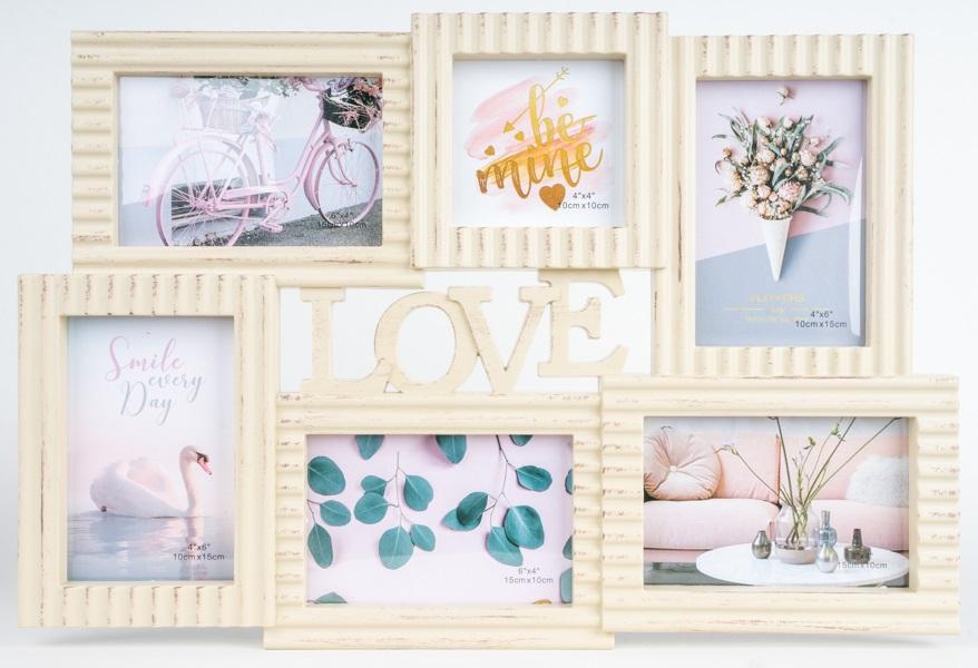 Plastikowa ramka na 5 foto 10 x 15 cm i 1 foto 10 x 10 cm, rozmiar ramki 49 x 34 cm, do zawieszenia