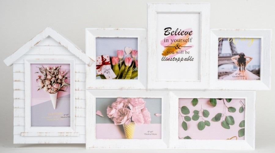 Plastikowa ramka na 4 foto 10 x 15 cm i 2 foto 10 x 10 cm, rozmiar ramki 56 x 31 cm, do zawieszenia
