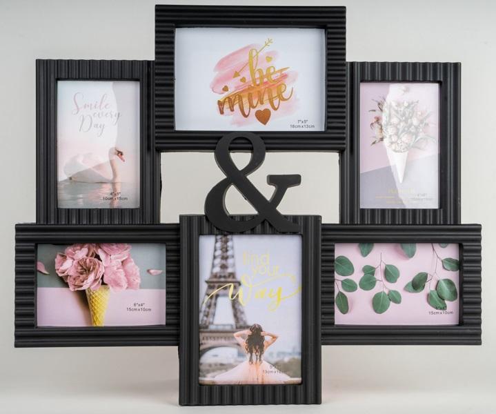 Plastikowa ramka na 4 foto 10 x 15 cm i 2 foto 13 x 18 cm, rozmiar ramki 51 x 44 cm, do zawieszenia.