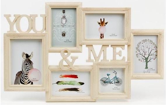 plastikowa ramka na 4 foto 10 x 15 cm, 1 foto 10 x 10 cm a 1 foto 13 x 18 cm, rozmiar ramki 57 x 36 cm, do zawieszenia poziomo