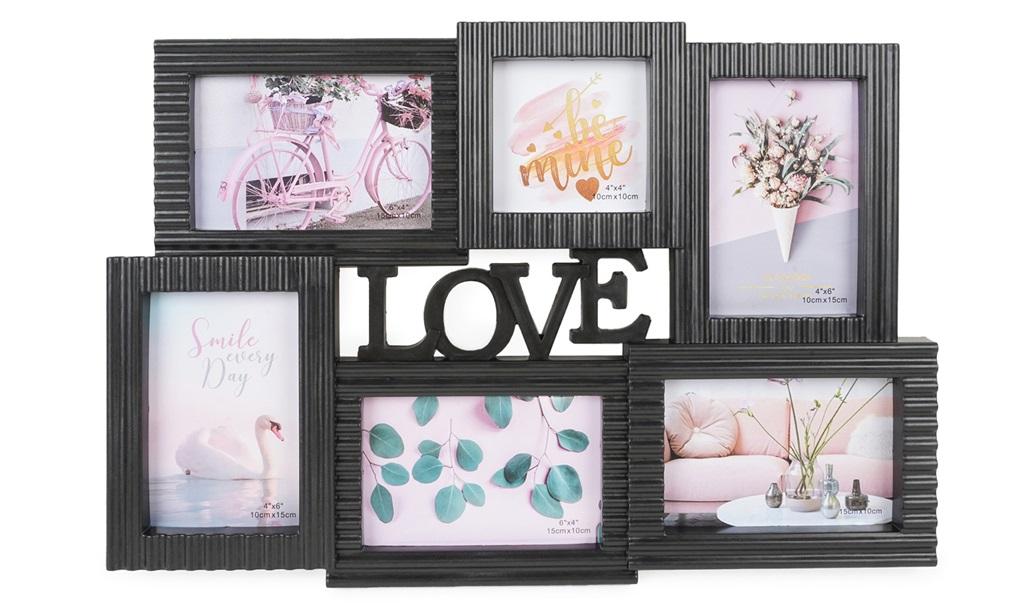 Plastikowa ramka na 5 foto 10 x 15 cm i 1 foto 10 x 10 cm, rozmiar ramki 49 x 34 cm, do zawieszenia