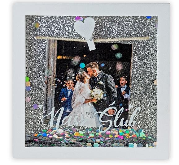 Pamiątkowa. elegancka ramka przestrzenna z cekinami i brokatem, 18x18 cm