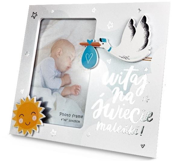 Pamiątkowa. elegancka ramka na zdjęcie z okazji narodzin chłopczyka.