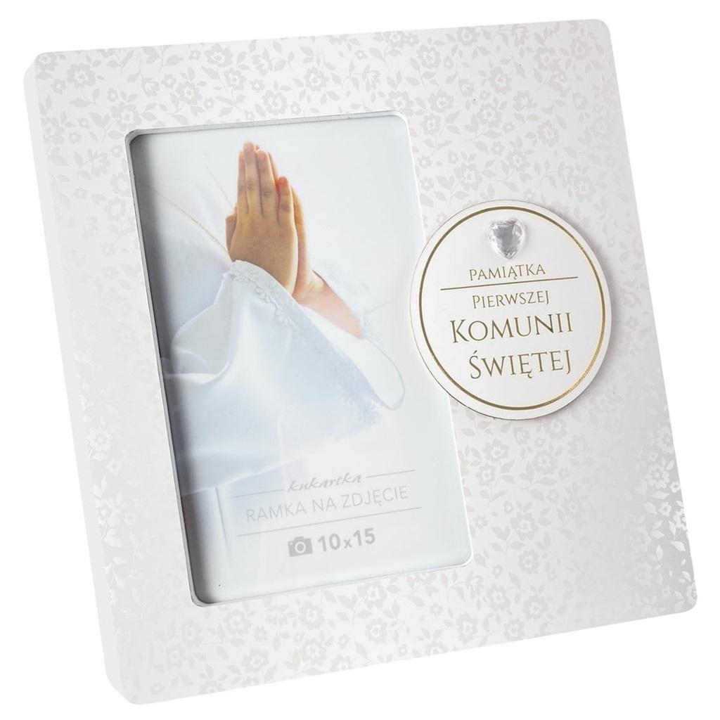 Ramka do zdjęć z serii Moments to wspaniały, niezapomniany pomysł na prezent komunijny. Wykonana z solidnej płyty MDF w drewnopodobnej okleinie. Ramki z serii Moments posiadają piękne, delikatne ozdoby oraz krótką sentencję upamietniającą daną okazję. Na tylnej ściance ramki jest haczyk do zawieszenia na ścianie i nóżka do postawienia. Cechy szczególne: typ: ramka do zdjęć do powieszenia lub postawienia, wielkość orientacyjna: 19 x 19 cm, mieści zdjęcie 10x15 cm, zdobienie: okleina idealnie imitująca drewno, grawer, lustrzany napis, styl: skandynawski, nowoczesny, tradycyjny, okazja: komunia