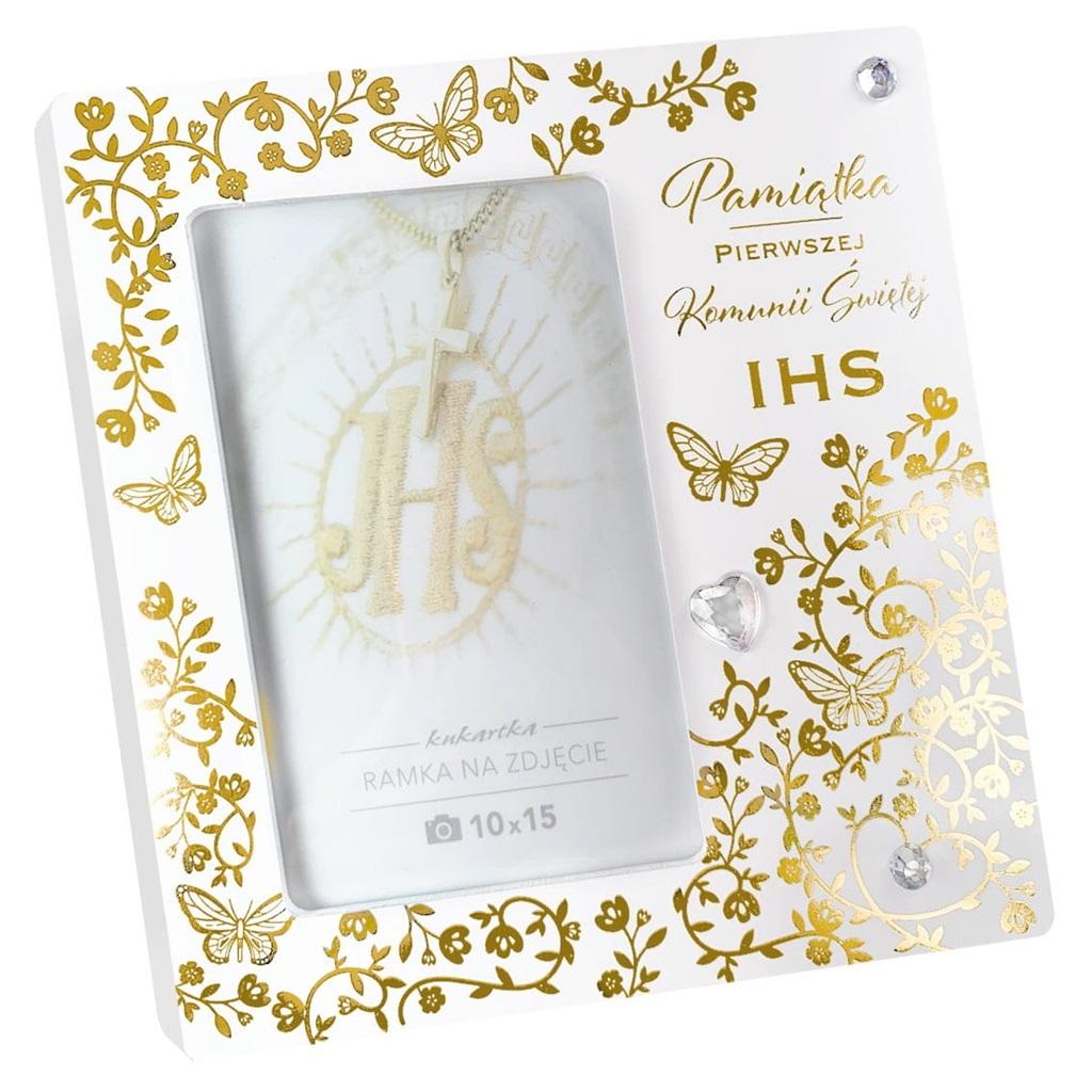 Ramka do zdjęć z serii Moments to wspaniały, niezapomniany pomysł na prezent komunijny. Wykonana z solidnej płyty MDF w drewnopodobnej okleinie. Ramki z serii Moments posiadają piękne, delikatne ozdoby oraz krótką sentencję upamietniającą daną okazję. Na tylnej ściance ramki jest haczyk do zawieszenia na ścianie i nóżka do postawienia. Cechy szczególne: typ: ramka do zdjęć do powieszenia lub postawienia, wielkość orientacyjna: 19 x 19 cm, mieści zdjęcie 10x15 cm, zdobienie: okleina idealnie imitująca drewno, grawer, lustrzany napis, styl: skandynawski, nowoczesny, tradycyjny, okazja: komunia
