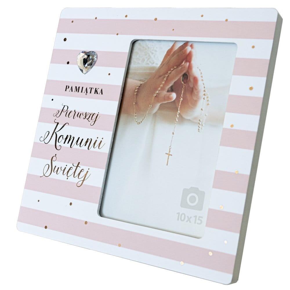 Ramka do zdjęć z serii Moments to wspaniały, niezapomniany pomysł na prezent komunijny. Wykonana z solidnej płyty MDF w drewnopodobnej okleinie. Ramki z serii Moments posiadają piękne, delikatne ozdoby oraz krótką sentencję upamietniającą daną okazję. Na tylnej ściance ramki jest haczyk do zawieszenia na ścianie i nóżka do postawienia. Cechy szczególne: typ: ramka do zdjęć do powieszenia lub postawienia, wielkość orientacyjna: 19 x 19 cm, mieści zdjęcie 10x15 cm, zdobienie: okleina idealnie imitująca drewno, grawer, lustrzany napis, styl: skandynawski, nowoczesny, tradycyjny.