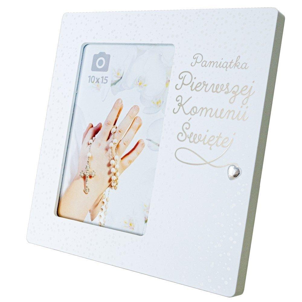 Ramka do zdjęć z serii Moments to wspaniały, niezapomniany pomysł na prezent komunijny. Wykonana z solidnej płyty MDF w drewnopodobnej okleinie. Ramki z serii Moments posiadają piękne, delikatne ozdoby oraz krótką sentencję upamietniającą daną okazję. Na tylnej ściance ramki jest haczyk do zawieszenia na ścianie i nóżka do postawienia. Cechy szczególne: typ: ramka do zdjęć do powieszenia lub postawienia, wielkość orientacyjna: 19 x 19 cm, mieści zdjęcie 10x15 cm, zdobienie: okleina idealnie imitująca drewno, grawer, lustrzany napis, styl: skandynawski, nowoczesny, tradycyjny.