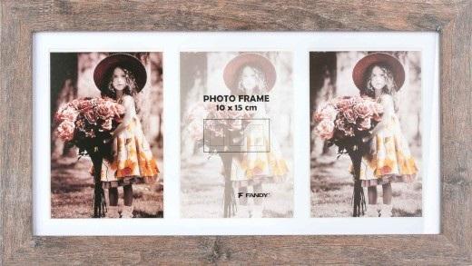 drewniana ramka na 3 foto 10 x 15 cm, rozmiar ramki 41,6 x 23,6 cm, do zawieszenia poziomo i pionowo, szerokość listwy 2,8 cm