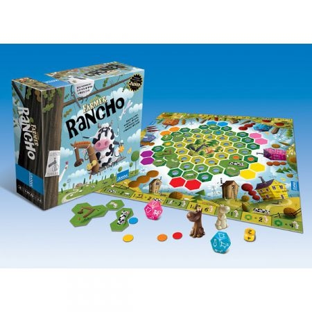Gra planszowa RANCHO to kontynuacja znanej i cenionej gry SUPERFARMER. RANCHO, którego autorem jest Michał Stajszczak, powstało, aby uczcić pamięć wspaniałego polskiego matematyka, profesora Karola Borsuka, i przypomnieć sukces HODOWLI ZWIERZĄTEK. Gra SUPERFARMER przygotowana w oparciu o ideę profesora podczas 15 lat obecności w Polsce i w wielu innych krajach świata zdobyła rzesze fanów. W rolę superfarmerów wcielały się dziesiątki tysięcy dzieci i dorosłych na całym świecie. Genialny pomysł profesora Borsuka polegał na wykonywaniu rzutów dwiema dwunastościennymi kostkami i tym sposobem rozmnażaniu zwierzątek występujących na nich. RANCHO wykorzystuje najlepsze elementy rozgrywki z klasycznego pomysłu, a przy tym zawiera więcej elementów i możliwości strategicznych. Rzucając dwunastościennymi kostkami, staracie się zarządzać hodowlą, a rywalizując na wspólnej planszy chcecie uczynić Wasze rancho najlepszym w okolicy. Macie do pomocy dzielne psy pasterskie, bo w pobliskim lesie na Wasze stada czyhają wilk i lis.