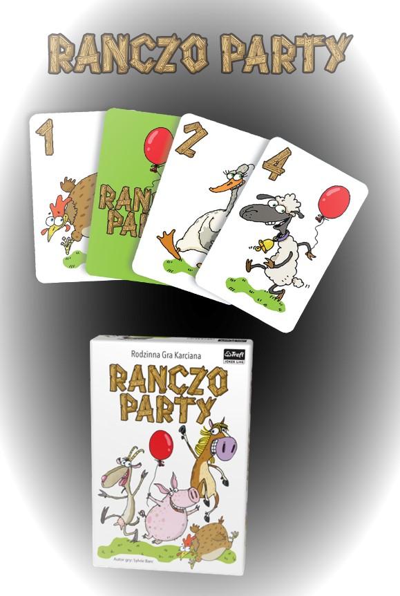Ranczo Party to zabawna taktyczna układanka, która uczy planowania i pobudza logiczne myślenie. Zadaniem graczy jest kompletowanie wierszy i kolumn kart, przedstawiających zwierzęta gospodarskie udające się na huczne przyjęcie urodzinowe. Zbierają oni w ten sposób cenne punkty zwycięstwa, ale musza przy tym uważać, by planując własne zagrywki, nie ułatwić zadania przeciwnikom. A kluczem do sukcesu jest… czerwony balonik. Dlaczego ta gra Cię zainteresuje? W trakcie rozgrywki emocje rosną, jak w dobrym filmie akcji. Po skończonej grze, wszyscy chcą zgrać drugi raz. I trzeci. I czwarty… Zasady do opanowania w zaledwie kilka minut. Wesołe rysunki wywołają uśmiech na twarzy każdego ponuraka. Zgrabne pudełko zmieści się nawet w niewielkiej torebce.