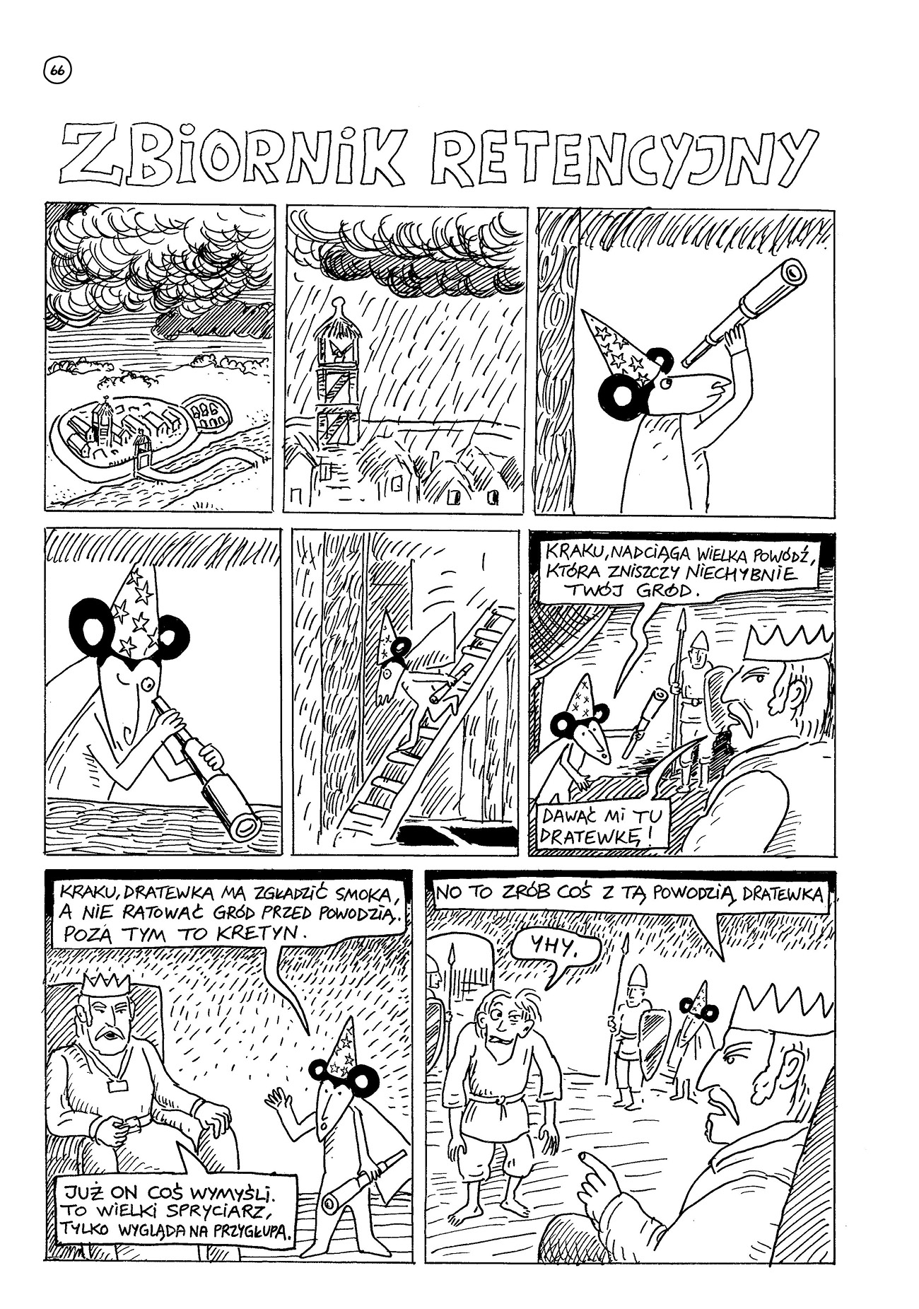 Ratman jest bohaterem filozoficznych anegdot, nosicielem metafizycznych wątpliwości, poszukiwaczem absolutu, wreszcie zdystansowanym obserwatorem mitologicznych krain. Perypetie bohatera są często pastiszem, parodią znanych dzieł, bohaterów literackich i popkulturowych. Purnonsensowe, surrealistyczne i ironiczne poczucie humoru oraz językowe zabawy sprawiają, że lekturze towarzyszy niepowstrzymany chichot.