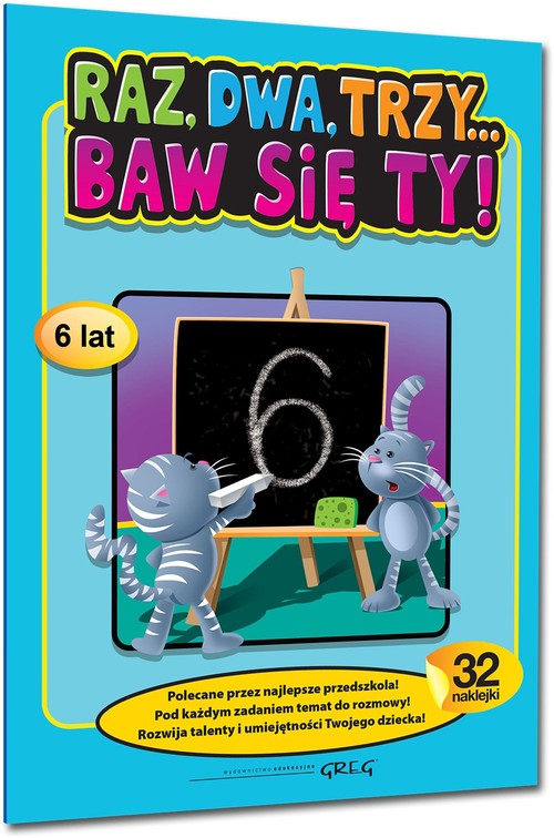 Raz, dwa, trzy... Baw się ty! - 6 lat to książeczka przygotowana specjalnie z myślą o ciekawych świata i bystrych sześciolatkach. Piękne, kolorowe ilustracje cieszą oko, a ciekawe zadania na długo zainteresują dziecko - labirynty, porządkowanie rozsypanek, dopasowywanie elementów, rymowanie, krzyżówki. Dzieci fantastycznie się bawią, a jednocześnie ćwiczą koncentrację, zdolność logicznego myślenia i kojarzenia faktów oraz umiejętności potrzebne w szkolnej praktyce. Sympatyczne postacie i wesołe kolory sprawią, że dzieci nie będą chciały oderwać się od tej książeczki! Zabawa jest jeszcze bardziej atrakcyjna dzięki naklejkom towarzyszącym części zadań.Poziom trudności jest idealnie dostosowany do możliwości sześciolatków.Zadania uzupełnione zostały o wskazówki dla rodziców - sugestie interesujących zabaw, rozmów, ciekawostki.Gorąco polecamy!