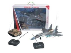 samolot SU-35 (46 cm), skala 1:48, światło, czołg ze światłem, 2 częstotliwości 27MHz i 49 MHz, dźwięk, pełne sterowanie radiem, zasilanie: samolot 4xAA, czołg 4xAA, pilot 2xAA (nie są dołączone),