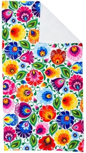 Ręcznik z wzorem w łowickie kwiaty z wycinanki