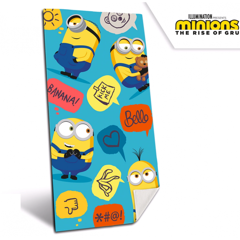Ręcznik plażowy z motywem Minionki wyjątkowo delikatny i miły w dotyku. Idealny na plażę , basen i do kąpieli w domu.