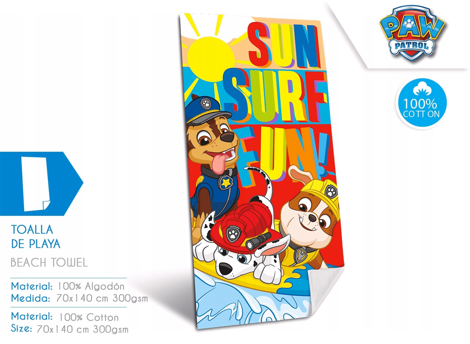 Ręcznik plażowy z motywem Psi Patrol wyjątkowo delikatny i miły w dotyku.