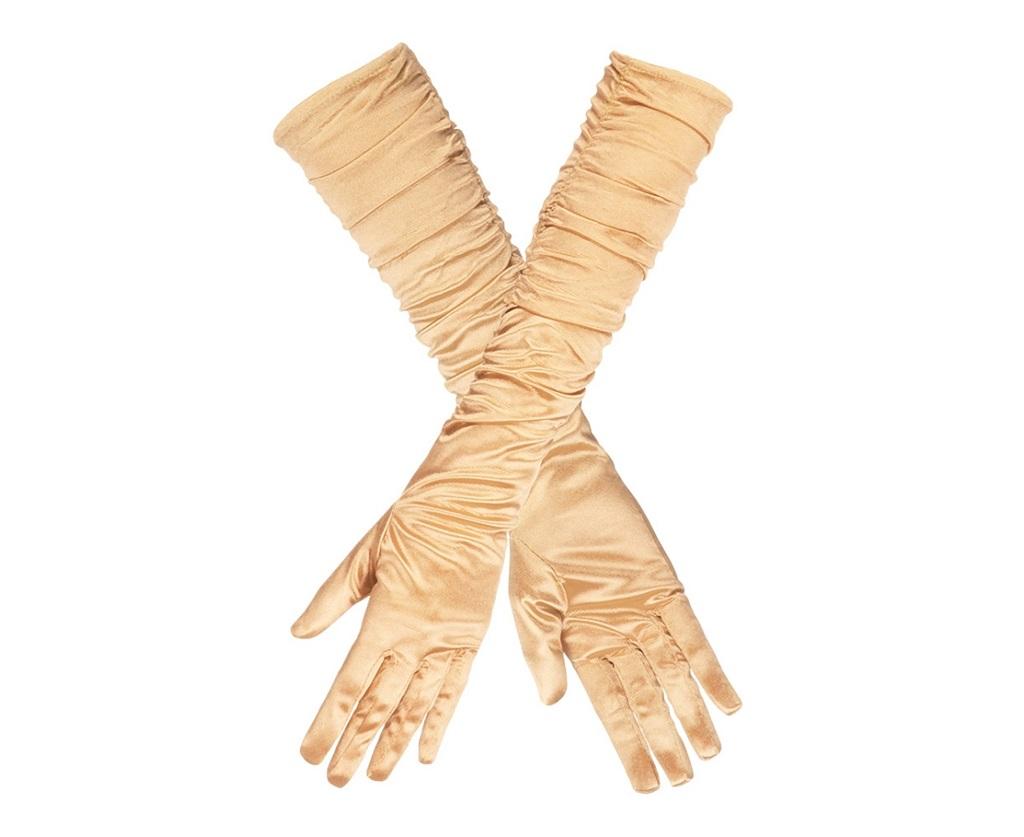 Złote, długie Rękawiczki do łokcia Hollywood Dodaj elegancki dodatek do swojej stylizacji i ciesz się fantastycznym efektem! Długie, złote rękawiczki są idealne zarówno na sylwestra, imprezę w stylu hollywood, retro czy inną, ważną i elegancką okazję! Produkt przeznaczony głównie dla kobiet Kolor: złoty Materiał: poliester