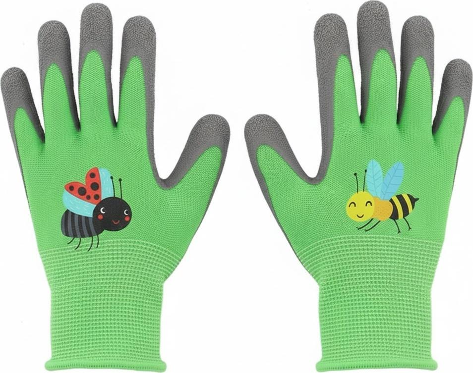 Te rękawiczki z wesołym nadrukiem owadów sprawiają, że prace w ogrodzie stają się jeszcze przyjemniejsze. Dzięki elastycznym mankietom małe rączki pozostają suche i czyste, a lateksowa powłoka na dłoniach poprawia przyczepność, co ułatwia trzymanie narzędzi i akcesoriów ogrodowych. To idealny sposób, by zachęcić dziecko do aktywności na świeżym powietrzu i wspólnej zabawy w ogrodzie.