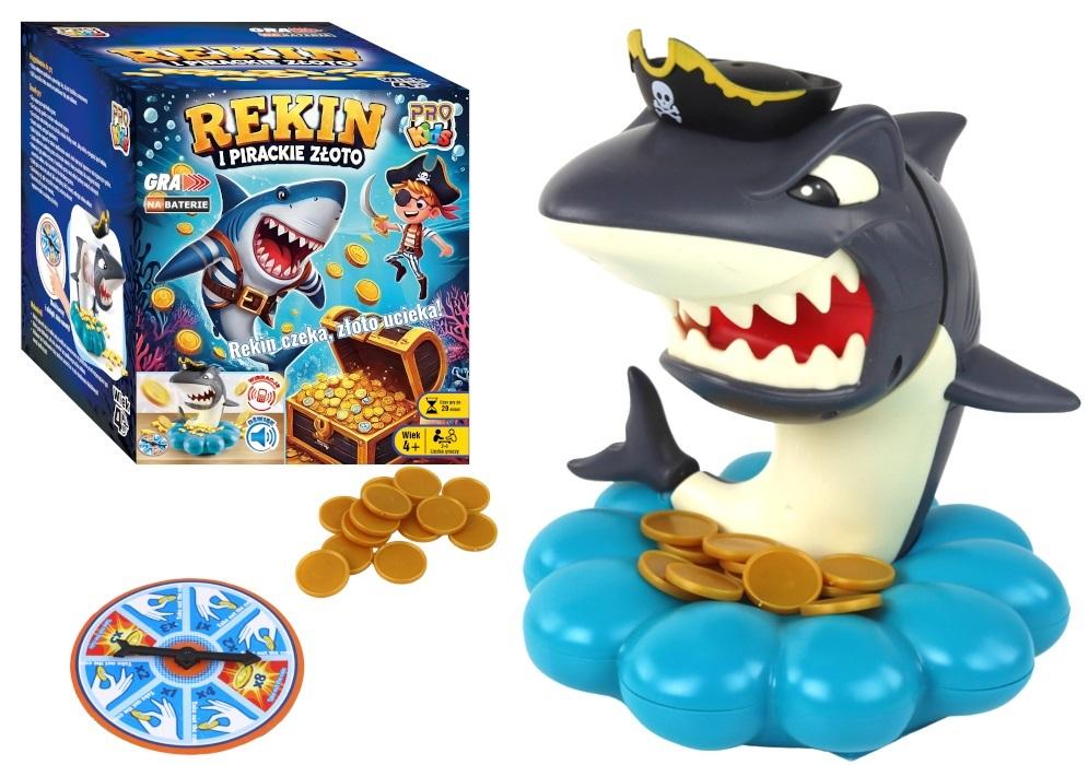 Gra "Rekin Pirackie Złoto" to dynamiczna gra rodzinna, która dostarcza mnóstwo śmiechu emocji. Gracze wcielają się rolę piratów, próbując zdobyć złote monety ukryte pod rekiniem. Uwaga! Rekin może zaatakować każdej chwili, co dodaje elementu niespodzianki adrenaliny. Gra sprzyja rozwijaniu refleksu koordynacji ruchowej, jej proste zasady czynią ją odpowiednią nawet dla najmłodszych graczy.