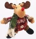 Figurka świąteczna RENIFER o wymiarach 14x20cm, w kolorze biało-zielono-czerwonym, poliester, wełna, zapakowana w torebkę foliową