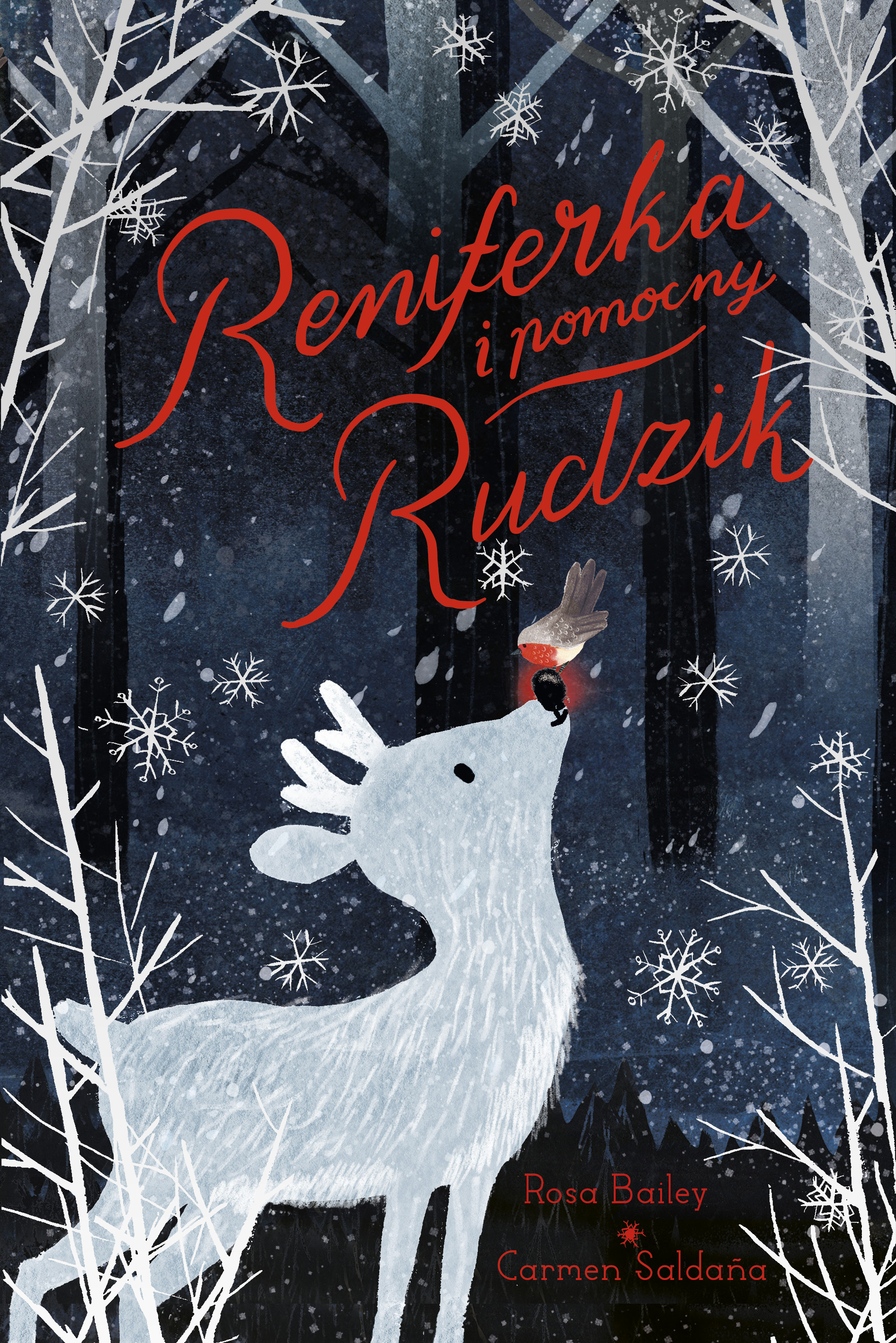Zaczyna padać śnieg i okrywa wszystko białym puchem. Między drzewami coś mieni się na czerwono. Mała reniferka oddziela się od mamy, żeby odkryć, co to takiego.