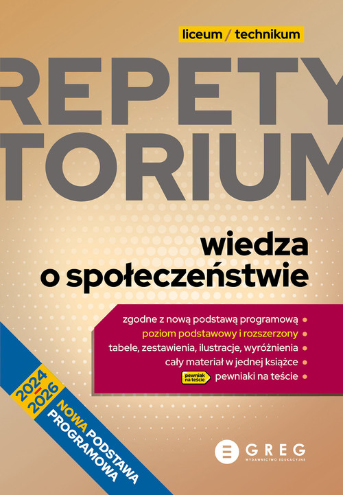 Wydawnictwo GREG we współpracy z najlepszymi nauczycielami przygotowało najnowsze wydanie Repetytorium - Wiedza o Społeczeństwie - książki, o którą bardzo często pytają uczniowie, maturzyści, a także nauczyciele!