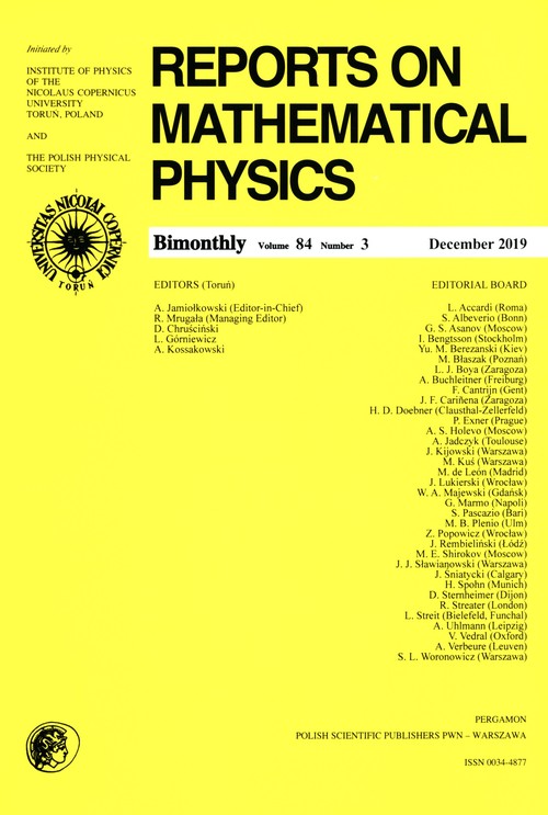Opakowanie Reports on Mathematical Physics 84/3 Pergamon